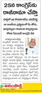 25న కాంగ్రెస్‌కు రాజీనామా చేస్తా