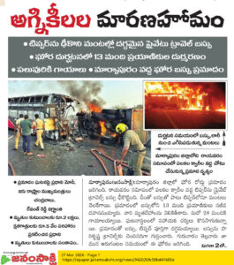 ` టిప్పర్ను ఢీకొని మంటల్లో దగ్ధమైన ప్రైవేటు ట్రావెల్ బస్సు