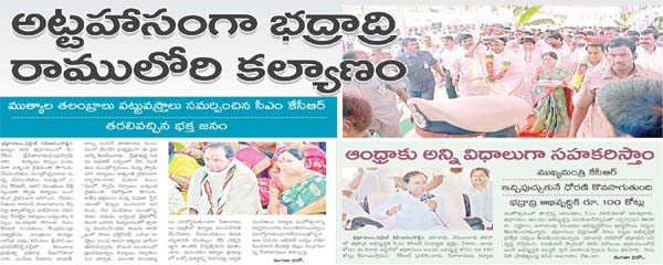 – ముత్యాల తలంబ్రాలు పట్టువస్త్రాలు సమర్పించిన సీఎం కేేసీఆర్