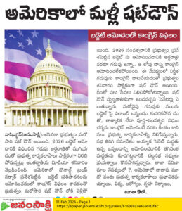వాషింగ్టన్(జనంసాక్షి):అమెరికా ప్రభుత్వం మరోసారి షట్ డౌన్ అయింది. 2026 బడ్జెట్ ఆమోదానికి విధించిన గడువు అర్ధరాత్రితో ముగియడంతో ప్రభుత్వ కార్యకలాపాలు పాక్షికంగా నిలిచి పోనున్నట్లు అంతర్జాతీయ విÖడియా శనివారం వెల్లడించింది. అమెరికాలో డొనాల్డ్ ట్రంప్ సర్కార్ ప్రవేశపెట్టిన బడ్జెట్ ప్రతిపాదనలను ఆమోదించడంలో కాంగ్రెస్ విఫలం కావడంతో ప్రభుత్వం మరోసారి షట్ డౌన్ లోకి వెళ్లిపోయింది. 2026 సంవత్సరానికి ప్రభుత్వం ప్రవేశపెట్టిన బడ్జెట్ ను ఆమోదించడానికి అర్ధరాత్రి వరకూ గడువు ఉన్నా.. ఆ లోపు దాన్ని కాంగ్రెస్ ఆమోదించలేకపోయింది. ఈ నేపథ్యంలో నిర్ణీత గడువును కాంగ్రెస్ దాటవేయడంతో ప్రభుత్వం శనివారం పాక్షికంగా షట్ డౌన్ అయింది. దీంతో పలు సేవలు నిలిచిపోబోతున్నాయి. షట్డౌన్ స్వల్పకాలికంగా ఉండవచ్చని సెనేటర్లు చెబుతున్నారు. మరోవైపు గడువుకు ముందు బడ్జెట్ పై ఎలాంటి ఒప్పందం కుదరకపోవడంతో, తాత్కాలిక లేదా పూర్తి`సంవత్సర నిధుల చర్యను కాంగ్రెస్ ఆమోదించే వరకు కీలకం కాని పలు ప్రభుత్వ కార్యకలాపాల్ని నిలిపేస్తున్నారు. సభ తిరిగి సమావేశం అయ్యాక సెనేట్ మద్దతు ఉన్న ఒప్పందాన్ని ఆమోదించడానికి తగినంత మద్దతును కూడగట్టడానికి చట్టసభ సభ్యులు ప్రయత్నాలు కొనసాగిస్తున్నారు. తాజా పరిణామాల నేపథ్యంలో ?. అమెరికాలో దాదాపు మూడో వంతు ప్రభుత్వ కార్యకలాపాలు ప్రభావితమయ్యాయి. విద్య, ఆరోగ్యం, గహ నిర్మాణం, రక్షణను నిర్వహించే అనేక ఏజెన్సీలలో షట్డౌన్ చర్యలు ప్రారంభమయ్యాయి. ప్రభుత్వ విభాగాలు రాత్రికి రాత్రే షట్డౌన్ ప్రణాళికలను అమలు చేయడం ప్రారంభించాలని భావించాయి. కానీ ఇది తాత్కాలికమేనన్న అంచనాలతో ఆ ప్రతిపాదన విరమించుకున్నాయి. వచ్చే వారం ప్రారంభంలో కాంగ్రెస్ ఊహించిన విధంగా ప్యాకేజీని ఆమోదిస్తే, కొన్ని రోజుల్లో నిధుల పునరుద్ధరణ ఉంటుందని అంచనా వేస్తున్నారు. షట్డౌన్ కొనసాగితే మాత్రం పదివేల మంది ప్రభుత్వ కార్మికులు జీతం లేని సెలవును ఎదుర్కోవలసి రావచ్చు, లేదా నిధులు అందేవరకు జీతం లేకుండా పని చేయాల్సి రావచ్చు.