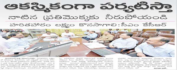 హైదరాబాద్,జులై 22(జనంసాక్షి): హరితహారం లక్ష్యంలో వెనకడుగు వేయరాదని, ఇదే స్ఫూర్తితో ముందుకు సాగాలని సిఎం కెసిఆర్ అధికారులను ఆదేశించారు. అలాగే నాటిన ప్రతి మొక్క బతికేలా చర్యలు తీసుకోవాలన్నారు. హరితహారంపై ముఖ్యమంత్రి కేసీఆర్ సవిూక్ష సమావేశం నిర్వహించారు. హరితహారంపై సోమవారం నుంచి ముఖ్యమంత్రి ఆకస్మిక పర్యటన చేయనున్నారు. హరితహారంలో ప్రజాప్రతినిధులు, అధికారులు పాల్గొనే విధానంపైనే పనితీరు అంచనా వేస్తామని సీఎం తెలిపారు. మంత్రులు, ప్రజాప్రతినిధులు, అధికారులు ఆయా జిల్లాల్లో హరితహారంలోనే ఉండాలని అన్నారు. ముందుగా ప్రకటించకుండానే ఆయా జిల్లాలకు వెళ్లి హరితహారంలో పాల్గొంటానని తెలిపారు. 46 కోట్ల మొక్కలు నాటి సంరక్షించేలా ప్రతి ఒక్కరూ ప్రణాళిక రూపొందించాలని చెప్పారు. జిల్లా, నియోజకవర్గం, మండలాల వారి ప్రణాళిక రూపొందించి కార్యాచరణ చేపట్టాలని సూచించారు. అగ్ని మాపక యంత్రాలను ఉపయోగించి మొక్కలకు నీరు పోయాలని అన్నారు. ఫైరింజన్ డ్రైవర్లకు వాకీటాకీలు ఇవ్వాలని ఆదేశించారు. నీళ్లు లేక మొక్కలు ఎండిపోయాయనే పరిస్థితి తలెత్తవద్దు. ప్రజాప్రతినిధులు, అధికారులు చివరి మొక్క నాటే వరకు యుద్ధం చేసే తరహాలో పనిచేయాలని చెప్పారు. ఇదో ఉద్యమంలా సాగుతున్న దశలో దీనిని అంతా విజయవంతం చేసి ఆకుపచ్చ తెలంగాణ చేయాలన్నారు. నీళ్లు లేకుండా మొక్కలు ఎండిపోయాయాన్న సమాధానం రావద్దన్నారు. యుద్దం తరహాలో వీటిని సంరంక్షించాలన్నారు. కాంపానిధులు 1500 కోట్లు అందుబాలు ఉన్నాయని, అవసరమైతే ఇతర నిధులను కూడా వినియోగించుకోవాలన్నారు. ప్రజాప్రతినిధులు, కలెక్టర్లు ఇదే పనిలో ఉండాలన్నారు. వివిధ మార్గాల ద్వారా సేకరించిన సమాచరం మేరకు పనితీరును అంచనా వేస్తానని అన్నారు. సవిూక్షలో మంత్రి హరీష్ రావు, చీఫ్ సెక్రటరీ రాజీవ్ శర్మ, సమాచారశాఖ కమిషనర్నవీన్ మిట్టల్ తదితరులు పాల్గోన్నారు.