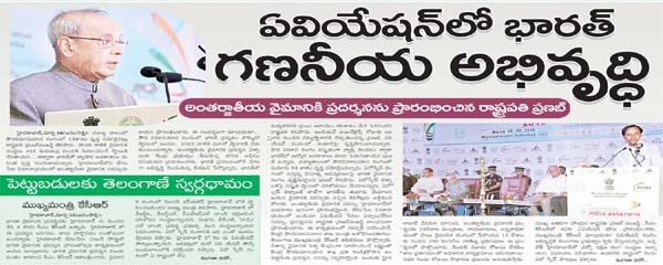 – అంతర్జాతీయ వైమానికి ప్రదర్శనను ప్రారంభించిన రాష్ట్రపతి ప్రణబ్