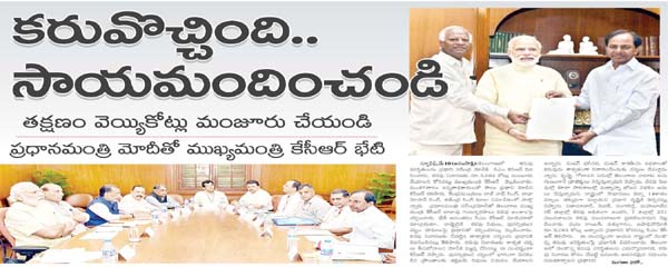 ఇదిలావుంటే తెలంగాణ రాష్టాన్రికి ఈయేడాది రూ.108 కోట్లు విడుదల చేశామని ప్రధాన మంత్రి కార్యాలయం పేర్కొంది. ప్రధాన మంత్రి నరేంద్ర మోదీతో సీఎం కల్వకుంట్ల చంద్రశేఖర్రావు సమావేశమై రాష్ట్రంలోని కరువు పరిస్థితులపై వివరించిన తర్వాత పలు అంశాలను పేర్కొంది. గ్రావిూణ ప్రాంతాల్లో రక్షిత మంచినీటి కోసం ప్రతిష్టాత్మకంగా మిషన్ భగీరథ పథకం చేపట్టామని సీఎం కేసీఆర్ ప్రధానికి వివరించారని తెలిపింది. నీటి సంరక్షణకు సాగునీటి అంశాలకు సంబంధించి అత్యుత్తమ విధానాలపై చర్చలు జరిపారని చెప్పింది. రిమోట్సెన్సింగ్, శాటిలైట్ టెక్నాలజీని ఉపయోగించి నీటి ప్రవాహాల్లో ఏర్పడ్డ అడ్డంకులను గుర్తించి పూడికతీత పనుల్లో ప్రజలను భాగస్వాములను చేయాలని ప్రధాని సూచించినట్టు వివరించింది. పట్టణ మురుగునీటిని సవిూప గ్రావిూణ ప్రాంతాల్లో సాగుకు వినియోగించుకునేలా చర్యలు చేపట్టాలని ప్రధాని సూచించినట్టు తెలిపింది. ప్రధాన మంత్రి సఫల్ బీమా యోజన పథకాన్ని తెలంగాణ సీఎం కల్వకుంట్ల చంద్రశేఖర్రావు అభినందించినట్టు వివరించింది. కాంపా చట్టానికి సవరణలు తీసుకొచ్చినందుకు పీఎం మోదీకి కేసీఆర్ కృతజ్ఞతలు తెలిపారని వెల్లడించింది.