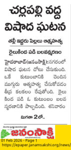 హైదరాబాద్(జనంసాక్షి):నగరంలో విషాద ఘటన చోటు చేసుకుంది. ఒకే కుటుంబానికి చెందిన ముగ్గురు ఆత్మహత్య చేసుకోవడం తీవ్ర కలకలం రేపుతోంది. రైలుకింద పడి ఓ కుటుంబం బలవన్మరణానికి పాల్పడింది. శనివారం తెల్లవారుజామున చర్లపల్లి ` ఘట్కేసర్ రైల్వేస్టేషన్ల మధ్య ఈ ఘటన జరిగింది. ఎంఎంటీఎస్ డౌన్లైన్లో తల్లి, ఇద్దరు పిల్లలు ఆత్మహత్య చేసుకున్నట్టుగా రైల్వే పోలీసులు గుర్తించారు. మతులు బోడుప్పల్ హరితహారం కాలనీకి చెందిన పిన్నింటి విజయశాంతి రెడ్డి, విశాల్ రెడ్డి, చైతన్య రెడ్డిగా తెలుస్తోంది. గూడ్స్ రైలు లోకో పైలట్ సమాచారంతో ఈ ఘటన వెలుగులోకి వచ్చింది.సమాచారం అందిన వెంటనే రైల్వే పోలీసులు అక్కడకు చేరుకుని మతదేహాలను స్వాధీనం చేసుకుని.. పోస్టుమార్టం నిమిత్తం గాంధీ ఆస్పత్రికి తరలించారు. మతుల వద్ద రైల్వే టికెట్లు, విలువైన వస్తువులు లేవని జీఆర్పీ పోలీసులు వెల్లడించారు. ఈ ఘటనపై పోలీసులు కేసు నమోదు చేసి దర్యాప్తు చేపట్టారు. కుటుంబం ఆత్మహత్యకు గల కారణాలు ఏంటి? ఆర్థికపరమైన ఇబ్బందులేమైనా ఉన్నాయా? ఇంకా ఇతర కారణాలా? అనే కోణంలో పోలీసులు విచారణ కొనసాగిస్తున్నారు. ఈ కుటుంబం ఆత్మహత్యతో బోడుప్పల్ హరితహారం కాలనీలో విషాద ఛాయలు అలుముకున్నాయి.