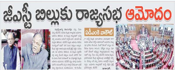 జీఎస్టీ బిల్లుకు రాజ్యసభ ఆమోదం