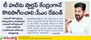 హైదరాబాద్(జనంసాక్షి):టీ హబ్ను స్టార్టప్ కేంద్రంగా కొనసాగించాలని ముఖ్యమంత్రి రేవంత్ రెడ్డి అధికారులను ఆదేశించారు. అద్దె భవనాల్లో ఉన్న ప్రభుత్వ ఆఫీసులను టీ హబ్కు మారుస్తున్నట్లు వస్తున్న వార్తలపై సీఎం వెంటనే స్పందించారు. అమెరికా పర్యటనలో ఉన్న సీఎం ప్రభుత్వ ప్రధాన కార్యదర్శి రామకష్ణారావుకు ఫోన్ చేసి మాట్లాడారు. అద్దె భవనాల్లో ఉన్న ప్రభుత్వ ఆఫీసులను అందుబాటులో ఉన్న ఇతర ప్రభుత్వ భవనాలకు మార్చాలని సూచించారు. టీ హబ్ను ప్రత్యేక స్టార్టప్ల కేంద్రంగానే గుర్తించాలని చెప్పారు. ఇంక్యుబేటర్గా, ఇన్నోవేషన్ క్యాటలిస్ట్గా స్టార్టప్లకు కేంద్రంగా ఏర్పాటు చేసిన టీ హబ్ లో ఇతర ఆఫీసులు ఉండకూడదని, అలాంటి ఆలోచనలుంటే విరమించుకోవాలని ముఖ్యమంత్రి ఆదేశించారు.