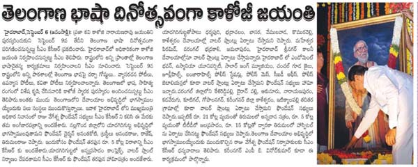 తెలంగాణ భాషా దినోత్సవంగా కాళోజీ జయంతి