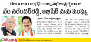 తెలంగాణ కాంగ్రెస్ రాజ్యసభ అభ్యర్థులుగా వేం నరేందర్రెడ్డి, అభిషేక్ మను సింఘ్వి