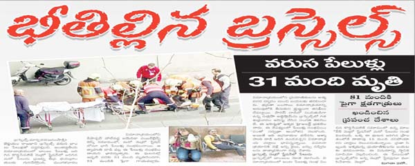 బ్రస్సెల్స్,మార్చి22(జనంసాక్షి): బెల్జియం రాజధాని బ్రస్సెల్స్ వరుస బాంబు పేలుళ్లతో దద్ధరిల్లింది. అంతర్జాతీయ విమానాశ్రయంలో బాంబు పేలుళ్లు జరిగిన కొద్దిసేపటికే మెట్రో స్టేషన్లో జరిగిన మరో పేలుడు ప్రజల్ని తీవ్ర భయబ్రాంతులకు గురిచేస్తోంది. మంగళవారం విమానాశ్రయంలోని డిపార్చర్ హాల్వద్ద అమెరికా ఎయిర్లైన్స్ డెస్క్ సవిూపంలో, మరో మెట్రో స్టేషన్లోనూ భారీ పేలుళ్లు సంభవించాయి. ఆత్మాహుతి దాడి వల్ల ఈ పేలుళ్లు సంభవించాయని భావిస్తున్నారు. ఈ ఘటనల్లో ఇప్పటి వరకు 31 మంది మృతిచెందగా, 81 మందికి పైగా గాయపడ్డారు. విమానాశ్రయంలోని ప్రయాణికులను అత్యవసర ద్వారం నుంచి బయటకు తరలించారు. భద్రతా బలగాలు విమానాశ్రయాన్ని అదుపులోకి తీసుకుని క్షుణ్ణంగా తనిఖీలు చేపట్టాయి. పారిస్ దాడిలో నిందితుడిగా ఉన్న సల్లాహ్ అబ్దెస్లామ్ను బ్రస్సెల్స్లో గత శుక్రవారం అరెస్టు చేసిన సంగతి తెలిసిందే. ఈ అరెస్టుతో అక్కడ హైఅలర్ట్ ప్రకటించారు. ఈ నేపథ్యంలో పేలుళ్లు సంభవించడంతో సర్వత్రా ఆందోళన నెలకొంది. అయితే ఇది ఉగ్రవాదుల పనేనని, ఆత్మాహుతి దాడి జరిగి ఉండవచ్చని విమానాశ్రయ వర్గాలు భావిస్తున్నాయి. విమానాశ్రయానికి వెళ్లే అన్ని రైలు, బస్సు సర్వీసులను తాత్కాలికంగా రద్దు చేశారు.