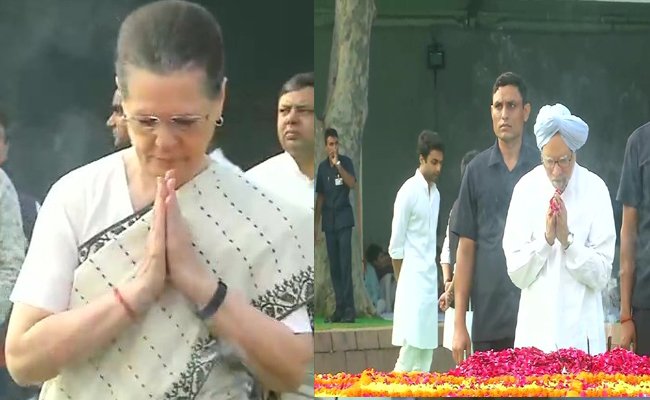 జాతిపిత మహాత్మాగాంధీ 150వ జయంతి సందర్భంగా  రాజ్‌ఘాట్‌లో గాంధీ సమాధి వద్ద నివాళి అర్పించిన కాంగ్రెస్‌ అధినేత్రి సోనియా గాంధీ, మాజీ ప్రధాని మన్మోహన్‌ సింగ్‌  కాగా దేశ వ్యాప్తంగా గాంధీ జయంతి ఉత్సవాలను కేంద్ర ప్రభుత్వం ఘనంగా నిర్వహిస్తోన్న విషయం తెలిసిందే.