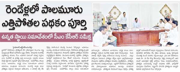 రెండేళ్లలో పాలమూరు ఎత్తిపోతల ప్రాజెక్టును పూర్తి చేసేందుకు పంప్హౌజ్లు, కాల్వల పనులు సమాంతరంగా జరగాలన్నారు. అదేవిధంగా జలాశయాలు, టన్నెళ్ల పనులు కూడా. ప్రాజెక్టును విస్తరించి రంగారెడ్డి జిల్లాకు కూడా నీరివ్వాలన్నారు. రెండు వారాల్లో సర్వేచేసి డిజైన్లు రూపొందించి టెండర్లు పిలవాలని, . ఎక్కువ ఏజెన్సీలను నియమించి ప్రాజెక్టుల సర్వేలు త్వరగా పూర్తిచేయాలన్నారు. పాలమూరు ఎత్తిపోతల ప్రాజెక్టును నిరంతరం పర్యవేక్షిస్తానని,. ప్రాజెక్టుపై ప్రతి సోమవారం సవిూక్షించాలన్నారు. బడ్జెట్లో నీటిపారుదల ప్రాజెక్టులకే తొలి ప్రాధాన్యంఅంటూ అధికారులు అలసత్వం చూపకుండా పనిచేయాలన్నారు. ప్రాజెక్టులకు వెనువెంటనే బిల్లులు చెల్లిస్తాం. ప్రాజెక్టు పూర్తితో మహబూబ్నగర్ జిల్లాను సస్యశ్యామలం చేయాలని వివరించారు. త్వరితగతిన భూసేకరణ చేసి, రైతుల భూములు, ఇండ్లు, స్థిరాస్తులకు విలువకట్టి వెంటనే పరిహారం చెల్లించాలన్నారు. ప్రతి ఏటా నీటిపారుదల శాఖకు రూ. 25 వేల కోట్లు కేటాయిస్తాం. డిజైన్ల రూపకల్పనలో, ఇతర పనుల్లో అవసరమైతే రిటైర్డ్ ఉద్యోగుల సేవలు వినియోగించుకోవాలి. ప్రాజెక్టుకు అవసరమయ్యే విద్యుత్ సరఫరాకు జెన్కో,