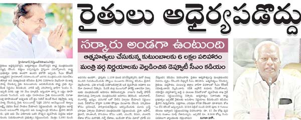 – ఆత్మహత్యలు చేసుకున్న కుటుంబాలకు 6 లక్షల పరిహారం