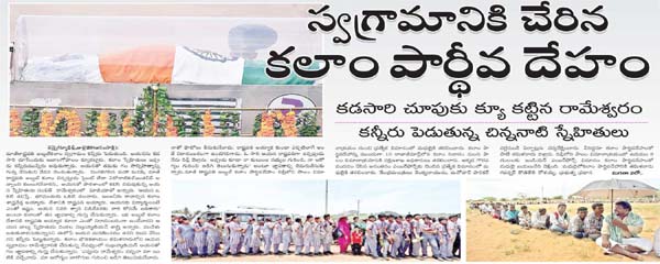 – కడసారి చూపుకు క్యూ కట్టిన రామేశ్వరం