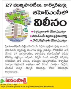 27 మున్సిపాలిటీలు, కార్పొరేషన్లు జీహెచ్ఎంసీలో విలీనం