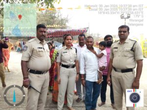 నడికూడ, జనవరి 30 (జనం సాక్షి):హనుమకొండ జిల్లా నడికుడ మండలం కంటాత్మకూర్ సమ్మక్క సారలమ్మ జాతరలో శుక్రవారం రోజున హసన్పర్తి మండలం నాగారం గ్రామానికి చెందిన బండారి కిరణ్ రెండు సంవత్సరాల వయసుగల కుమార్తె రష్మిక జాతర ప్రాంగణంలో తప్పిపోగా దామెర పోలీసులు గుర్తించి పాపను వారి తల్లిదండ్రులకు అప్పగించారు. అనంతరం పాప తల్లిదండ్రులు దామెర పోలీసులకు కృతజ్ఞతలు తెలియజేశారు.