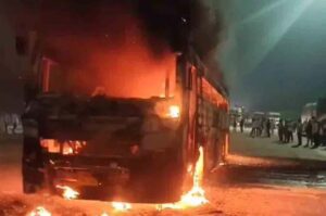 అక్టోబర్26 “జనం సాక్షి ఏపీలోని కర్నూలు జిల్లాలో ప్రైవేట్ ట్రావెల్స్ బస్సు మంటల్లో చిక్కుకుని 20 మంది మరణించిన ఘటనను మరువకముందే మరో ఘటన చోటుచేసుకుంది. ఢిల్లీనుంచి గోండా కు 70 మంది ప్రయాణికులతో వెళ్తున్న ట్రావెల్స్ బస్సు ఒక్కసారిగా మంటల్లో చిక్కుకున్నది