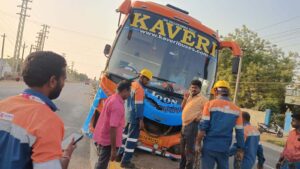- మాడుగులపల్లిలో తప్పిన పెను ప్రమాదం డివైడర్పైకి దూసుకెళ్లిన ప్రైవేట్ బస్సు