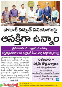 ` ప్రతిపాదనలను అధ్యయనం చేస్తాం ` జర్మనీ ప్రతినిధులతో డిప్యూటీ సీఎం భట్టి విక్రమార్క మల్లు హైదరాబాద్‌(జనంసాక్షి):తెలంగాణ రాష్ట్రంలో విద్యుత్‌ రంగం బలోపేతం లో భాగంగా సోలార్‌ …