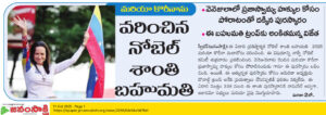 - మరియా కొరీనాను వరించిన నోబెల్ శాంతి బహుమతి