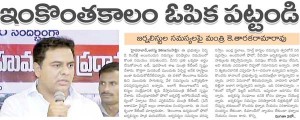 – జర్నలిస్టుల సమస్యలపై మంత్రి కేటీఆర్‌ హైదరాబాద్‌,ఆగస్టు 26(జనంసాక్షి): ఈ ప్రభుత్వం ఏర్పడి రెండేళ్లే అయినందున సమస్యల పరిష్కారం విషయంలో కొంత సమయం పడుతుందని, దీనిని ప్రతి …