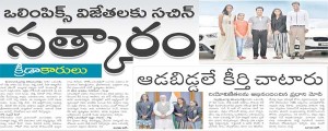 – క్రీడాకారులు హైదరాబాద్‌,ఆగస్టు 28(జనంసాక్షి): రియో ఒలింపిక్స్‌లో సత్తా చాటిన పీవీ సింధు, సాక్షి మలిక్‌, దీపా కర్మాకర్‌ను మాజీ క్రికెటర్‌, రాజ్యసభ సభ్యుడు సచిన్‌ టెండూల్కర్‌ …