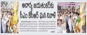 హైదరాబాద్: తెలంగాణ ప్రాంతానికి సమైక్య రాష్ట్రంలో జరిగిన అన్యాయాన్ని విడమరిచి వివరించిన వ్యక్తి ప్రొఫెసర్ జయశంకర్సార్ అని సీఎం కల్వకుంట్ల చంద్రశేఖర్రావు అన్నారు. తెలంగాణ రాష్ట్రం ఆవిర్భావం …