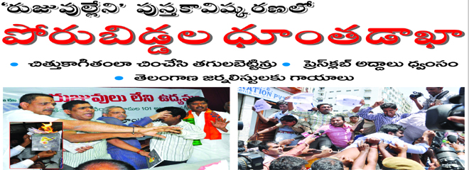 చిత్తుకాగితంలా చించేసి తగులబెట్టిన్రు ప్రెస్‌క్లబ్‌ అద్దాలు ధ్వంసం తెలంగాణ జర్నలిస్టులకు గాయాలు హౖదరాబాద్‌, ఏప్రిల్‌ 17 (జనంసాక్షి) : ‘రుజువుల్లేని ఉద్యమం’ పేరుతో విశాలాంధ్ర మహాసభ రూపొందించిన …
