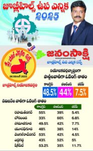 హైదరాబాద్, నవంబర్ 06 (జనంసాక్షి) : ఎప్పుడెప్పుడా అని ఎదురుచూస్తున్నవారికి ‘జనంసాక్షి’ తన తుది సర్వే తీర్పును వెలువరించింది. సర్వేల్లో ఇప్పటివరకు మేటి సంస్థగా పేరొందిన ‘జనంసాక్షి’ సార్వత్రిక ఎన్నికలు సహా అన్ని తరహా ఎన్నికల సమరంలో సర్వే ఫలితాలు వెలువరించి జాతీయ స్థాయిలో గుర్తింపు పొందిన విషయం విదితమే. తాజాగా మరోసారి జూబ్లీహిల్స్ ఉప ఎన్నిక ప్రీ పోల్ సర్వే ఫలితాలను విడుదల చేసి అందరినీ ఆశ్చర్యానికి గురిచేసింది. ప్రజల్లో ఉన్నది, వారితో పంచుకున్నది, విస్తృతంగా విన్నది తన సర్వే బ్యాలెట్ నిక్షిప్తం చేసింది. గత అసెంబ్లీ ఎన్నికల మాదిరిగానే జూబ్లీహిల్స్ ఉప ఎన్నికలోనూ పోలింగ్ కంటే ముందే ఓటర్ల నాడీని బహిర్గతం చేసి తెలంగాణ సమాజంలో ఆసక్తి రేకెత్తించింది.