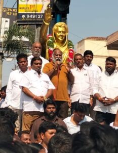 సంగారెడ్డి, నవంబర్ 19( జనం సాక్షి) సంగారెడ్డిపట్టణంలో స్ధానిక ఐబీ ఎదుట దేశ మాజీ ప్రధాని స్వర్గీయఇందిరా గాంధీ 108 జయంతి వేడుకలలు నిర్వహించడం జరిగింది.కార్యక్రమానికిటిపిసిసి వర్కింగ్ ప్రెసిడెంట్ జగ్గారెడ్డి ఆధ్వర్యం బుదవారం ఇందిరా గాంధీ విగ్రహానికి పూలమాలలు వేసి ఘనంగా నివాళి అర్పించారు. ఈ సందర్బంగా జగ్గారెడ్డి మాట్లాడుతూ మాజీ దేశ ప్రధాని ఇందిరా గాంధీ చేసిన సేవలు కొనియాడారు. కార్యక్రమంలో తోపాజి అనంత కిషన్ కాంగ్రెస్ పార్టీ నాయకులు పాల్గొన్నారు.