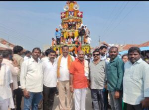 గంభీరావుపేట ఏప్రిల్ 04 (జనం సాక్షి):రాజన్న సిరిసిల్ల జిల్లా మండల కేంద్రంలోని శ్రీ సీతారామస్వామి బ్రహ్మోత్సవాలు నేత్రపర్వంగా సాగుతు న్నాయి. శనివారం రోజు స్వామివారి ఉత్సవ మూర్తులను సర్వాంగ సుందరంగా అలంకరించి రథోత్సవం కన్నుల పండగ సితార బజార్ వీధుల గుండా నిర్వహించారు.భాజా భజంత్రీ లు మంగళ వాయిద్యాలు భక్తుల, రామనామ స్మరణతతో స్వామి వారిని ఊరేగింపులు జరుగుతున్నాయి, ఈ కార్యక్రమానికి ముఖ్యఅతిథిగా పలువురు సర్పంచులతో పాటు, తెలంగాణ జాగృతి నాయకుడు కూర సురేష్, తోపాటు రాధాకృష్ణ శర్మ,తో వివిధ పార్టీల మండల అధ్యక్షులు, దర్శించుకుని స్వామివారి ఆశీర్వాదం పొందారు అనంతరం మహిళలు మంగళ హారతులతో పెద్ద ఎత్తున స్వామివారికి స్వాగతం పలికారు, ఆలయ చైర్మన్ మల్లు వారి నర్సా గౌడ్ మాట్లాడుతూ, బ్రహ్మోత్సవాల్లో భాగంగా రథోత్సవంనికి చుట్టుపక్కల నుండి కాకుండా వివిధ జిల్లాల నుండి హాజరయ్యే భక్తజనానికి అన్ని విధాల ఏర్పాటు చేశామని, ప్రజలందరూ స్వామివారిని దర్శించుకుని, స్వామివారి కృపకు పాత్రులు కావాలని కోరారు,అంతేకాకుండా రథోత్సవానికి త్రాగునీరు, అందజేస్తున్న వారందరికీ స్వామి వారి ఆశీస్సులు ఉంటాయని తెలిపారు, ఈ బ్రహ్మోత్సవాలకు సహకరించిన ఆలయ కమిటీ, ప్రజలకు, భక్తులకు కృతజ్ఞతలు తెలిపారు, ఆ శ్రీరాముని ఆశీస్సులు ప్రతి భక్తులకు ఉంటాయని తెలిపారు,