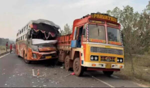 (జనంసాక్షి) నవంబర్ 30:ఆదిలాబాద్ జిల్లాలో ఘోర రోడ్డు ప్రమాదం జరిగింది. నేరేడిగొండ మండలం బోథ్ క్రాస్ రోడ్డు వద్ద జాతీయ రహదారిపై లారీని ప్రైవేటు ట్రావెల్స్ బస్సు వెనుక నుంచి ఢీకొట్టింది. ఈ ప్రమాదంలో బస్సులో ప్రయాణిస్తున్న ఇద్దరు అక్కడికక్కడే దుర్మరణం చెందారు.