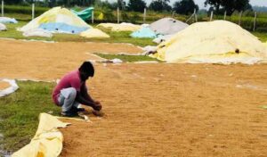 గత రెండు రోజుల క్రితం కురిసిన వర్షానికి వరి ధాన్యం తడిసిపోగా, మళ్లీ సోమవారం రాత్రి కురిసిన భారీ వర్షానికి ధాన్యం మళ్లీ తడవడం జరిగింది. మెదక్ జిల్లా నర్సాపూర్ మండలం కాజీపేట గ్రామంలో పీఏసీఎస్ ఆధ్వర్యంలో ఏర్పాటు చేసిన ధాన్యం కొనుగోలు కేంద్రాన్ని అధికారులు, సిబ్బంది ఇప్పటికీ ప్రారంభించకపోవడం శోచనీయం. ఈ నెల 27వ తేదీన పీఏసీఎస్ ఆధ్వర్యంలో ధాన్యం కొనుగోలు కేంద్రాలను ప్రారంభిస్తామని పీఏసీఎస్ చైర్మన్ రాజు యాదవ్ ప్రకటించినప్పటికీ ధాన్యం కొనుగోలు కేంద్రం ప్రారంభించకపోవడం విచారకరం.