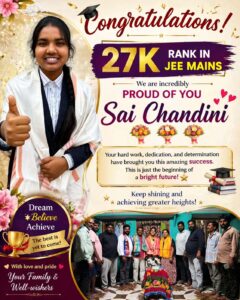 నిరుపేద కుటుంబంలో విరిసిన విద్య కుసుమం ఇరిగి సాయి చాందిని