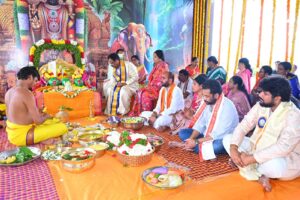 భూదాన్ పోచంపల్లి, ఫిబ్రవరి 25 (జనం సాక్షి):మండలంలోని కనుముక్కుల గ్రామంలో శ్రీ పద్మావతి సమేత శ్రీ వేంకటేశ్వర స్వామివారి 20వ వార్షిక బ్రహ్మోత్సవాలు భక్తిశ్రద్ధలతో నిర్వహించారు. ఆలయ ధర్మకర్తలు కోట మల్లారెడ్డి, పుష్పలత ఆధ్వర్యంలో వేదపండితుల మంత్రోచ్చారణల మధ్య హోమం, శ్రీ సూక్త హవనం, పూర్ణాహుతి అనంతరం స్వామివారి తిరుకళ్యాణ మహోత్సవం వైభవంగా నిర్వహించారు. ముఖ్యతిధులుగా మాజీ మంత్రి, ఎమ్మెల్యే గుంతకండ్ల జగదీష్ రెడ్డి, మాజీ ఎమ్మెల్యే ఫైళ్ళ శేఖర్ రెడ్డి,బీఆర్ఎస్ పార్లమెంట్ నియోజకవర్గ ఇంచార్జి క్యామ మల్లేష్, సినీనటుడు శివాజీ హాజరయ్యారు. ఈ కార్యక్రమంలో సర్పంచ్ చుక్క శోభ శంకర్, గ్రామస్తులు, భక్తులు పెద్ద సంఖ్యలో పాల్గొన్నారు.